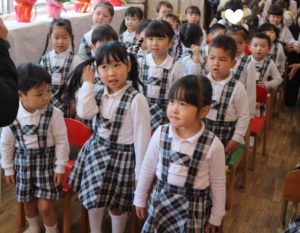 歌を歌ったり、先生たちの催し物を笑顔いっぱいで見ていました。