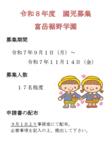 令和8年度の園児募集が9月1日から始まりました。