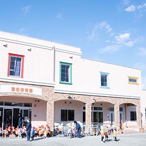 富岳保育園は保育所と児童発達支援センターが同じ建物内にある総合児童施設です。