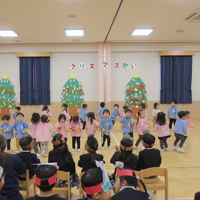 また、2歳以上児は市民会館大ホールにて、一年間のまとめの発表会を行います。 -