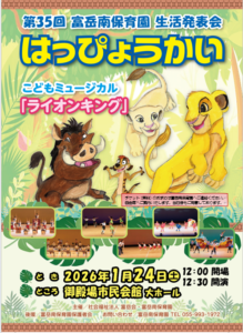 また、2歳以上児は市民会館大ホールにて、一年間のまとめの発表会を行います。