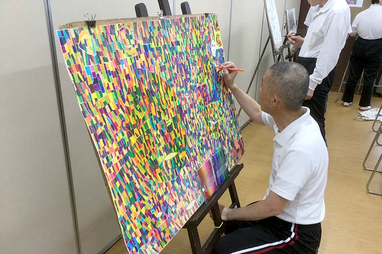 和太鼓や誕生会や運動会などの年中行事を中心に、利用者が明るく活動できる取り組みを多くおこなっております。絵画・造形活動では静岡県内で開催されている障害のある方々が出展する「愛護ギャラリー展」では絵画部門・陶芸部門・工芸部門等の部門の中でも複数の部門で多くの賞を受賞してきました。
