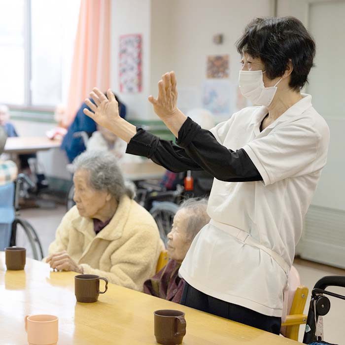 富岳一ノ瀬荘では、一人一人に合った介護計画に基づき、食事、入浴などの介護、音楽や陶芸などの芸術活動やフラダンスなどの余暇活動プログラムを提供しています。